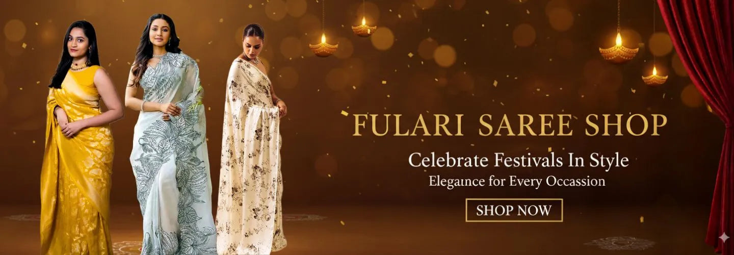 Fulari Elegant Floral Print Satin Saree – Ivory & Black with Matching Blouse Piece
